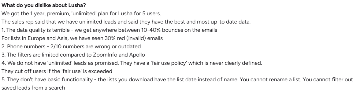 Cons of Lusha